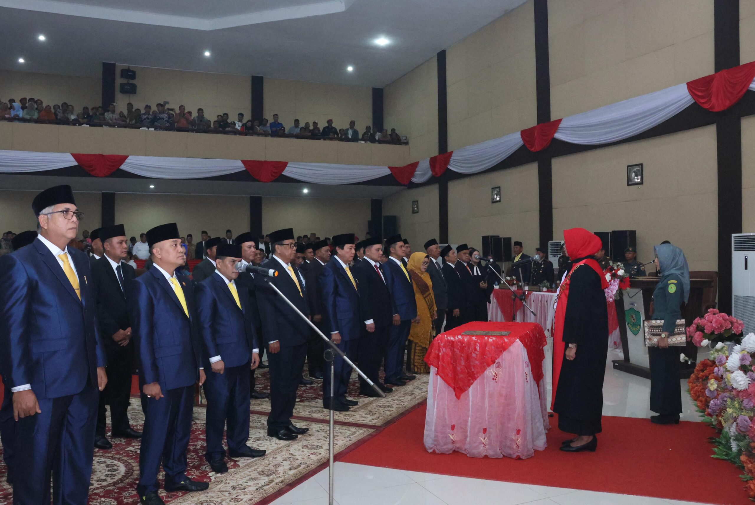 RADARINDO.co.id – Tapsel : Sebanyak 35 anggota Dewan Perwakilan Rakyat Daerah (DPRD) Kabupaten Tapanuli Selatan (Tapsel) periode 2024 – 2029, yang merupakan hasil Pemilihan Umum (Pemilu) 2024, diambil sumpah dan janjinya, pada sidang Paripurna Istimewa, di ruang Paripurna Dewan Kantor DPRD Tapsel, di Sipirok, Selasa (13/8/2024).