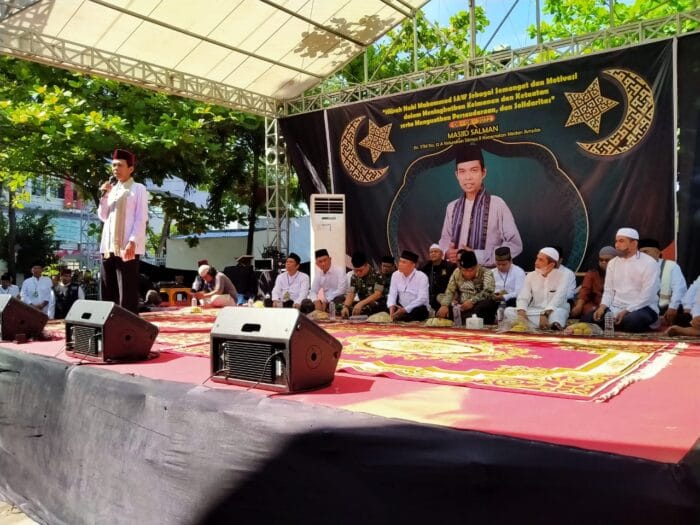 Turut hadir mendampingi Alustadz Prof Abdul Somad Pangdam I Bukit Barisan Mayjen TNI Achmad Daniel Chardin dan para panitia pelaksana peringatan sepuluh Muharram.