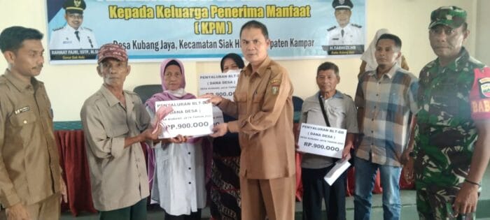 RADARINDO.co.id – Kampar : Bantuan Langsung Tunai (BLT) dari Dana Desa (DD) tahun 2022, hari ini disalurkan Oleh Aparat pemerintahan Desa Kubang Jaya Kecamatan Siak Hulu Kabupaten Kampar kepada Keluarga Penerima Mamfaat (KPM). Penyaluran langsung diserahkan langsung olek Kades Kubang Jaya H. Tarmizi HB. Selasa (06/09/2022) sekira pukul 13.30 Wib, bertempat di ruang Aula Kantor Desa.