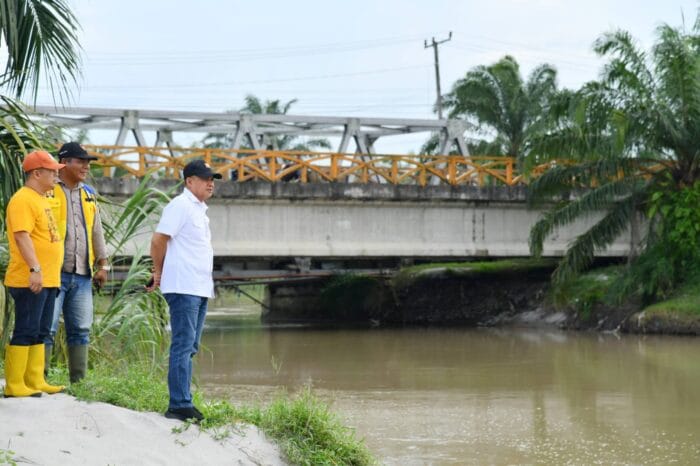 Peninjauan dilakukan di beberapa titik strategis arus air sungai yang disinyalir penyebab debit air naik hingga ke permukiman warga, yaitu Bendungan Cinta Maju di Desa Pematang Panjang dan Bendungan Tanjung Muda di Desa Tanjung Muda.
