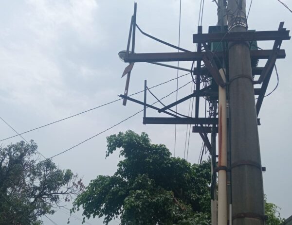 Pada unggahan yang dilihat di group WhatsApp (WA), Senin (09/3/2026), terlihat jelas besi pengaman trafo listrik yang nyaris putus.