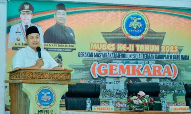 RADARINDO.co.id – Batu Bara : Guna menghasilkan berbagai program untuk peningkatan pembangunan Kabupaten Batu Bara, maka perlu menjaga kekompakan sesama anggota Gerakan Masyarakat Menuju Kesejahteraan Kabupaten Batu Bara (Gemkara). Pesan tersebut disampaikan Bupati Batu Bara, Ir. H. Zahir, M.AP, saat membuka Musyawarah Besar (Mubes) ke-2 Gemkara di Aula Asrama Haji, Medan, Senin (04/12/2023).