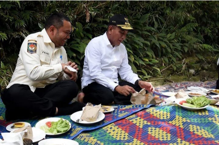 Tampak dilokasi tersebut, Gubernur bahkan juga makan siang dan melakukan ibadah solat dzuhur di tepi sungai berair jernih ini, Rabu (20/7).