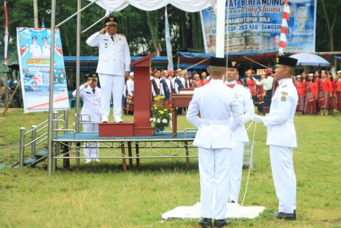 RADARINDO.co.id – Samosir : Bupati Samosir, Vandiko T. Gultom bertindak sebagai inspektur upacara (irup) pada peringatan HUT ke-78 Kemerdekaan RI tahun 2023 tingkat Kabupaten Samosir di Tanah Lapang Pangururan, Kamis (17/8/2023).