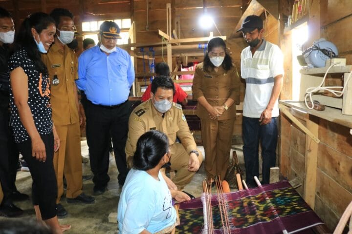RADARINDO.co.id – Samosir : Bupati Samosir Vandiko Timotius Gultom dalam program Bunga Desa Parhorasan Kecamatan Pangururan mengunjungi Sentra Tenun, pada 25 April 2022.