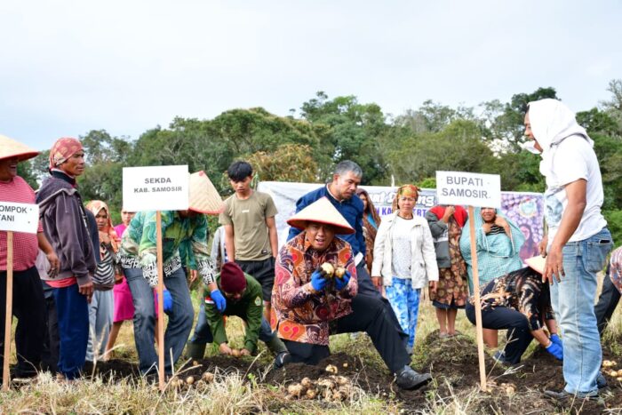 Bupati Samosir Panen Kentang Bersama Kelompok Tani Marlundu