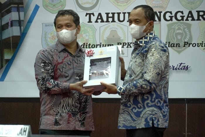 Bupati Zahir bersama Ketua DPRD Batu Bara, M Safi’i, dan Kepala BPK RI Perwakilan Sumatera Utara, Eydu Oktain Panjaitan, menandatangani bukti penyerahan hasil laporan keuangan di aula Kantor BPK RI Perwakilan Sumatera Utara, Jln Imam Bonjol, No. 22, Medan, Kamis (12/05/2022).