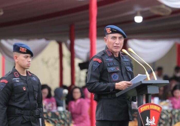 RADARINDO.co.id-Medan: Gubernur Sumatera Utara Edy Rahmayadi pimpin upacara Korps Brimob ke 77 di Mako Sat Brimob Polda Sumut. Senin (14/11/22). Dalam kesempatan ini upacara turut di ikuti oleh Kapolda Sumut, Wakapolda Sumut, Irwasda Polda Sumut, Ketua Bhayangkari Daerah Sumut, PJU Polda Sumut dan turut di hadiri oleh Pangdam I/BB, Danlantam I Belawan, Dankosek I Medan, Kabinda, Ka BNNP Sumut, Purnawirawan Polri dan personil Brimob Polda Sumut.