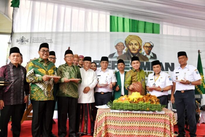 Hadir dalam peresmian acara tersebut Wakil Ketul MPR RI Arsul Sani, Wakil Gubernur DKI Jakarta Ahmad Riza Patria, Anggota DPR RI Fraksi PPP Achmad Baidowi, Ketua PWNU DKI Samsul Ma’arif dan jajaran pengurus PWNU DKI lainnya. (KRO/RD/ARIFIN)