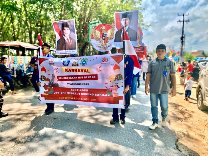 RADARINDO.co.id – Kampar : Jurnalis turut dalam karnaval di Dusun Kedung Mulyo, Desa Gunung Sari, Kecamatan Gunung Sahilan, Kabupaten Kampar, Minggu (17/8/2025).