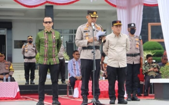 RADARINDO.co.id – Tapsel : Kapolres Tapanuli Selatan (Tapsel), AKBP Imam Zamroni menjadi Inspektur Upacara Apel Gelar Pasukan Operasi Lilin Toba 2022, dalam rangka pengamanan perayaan Natal 2022 dan perayaan Tahun Baru 2023 (Nataru), di lapangan komplek perkantoran Bupati Tapsel, Kamis (22/12/2022).