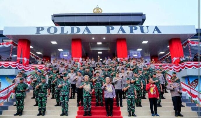 RADARINDO.co.id – Papua : Kapolri, Jenderal Listyo Sigit Prabowo bersama Panglima TNI, Laksamana Yudo Margono serta Kepala Staf TNI AD, AL dan AU, menghadiri peresmian gedung baru Mapolda Papua, Minggu (08/1/2023).