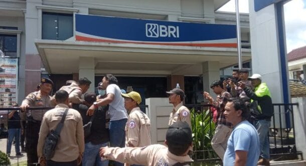RADARINDO.co.id – Banten : Massa yang mengatasnamakan Forum Masyarakat Pandeglang (AFMP) kembali menggelar aksi demo di Kantor Cabang Pembantu (KCP) Bank BRI Kecamatan Pandeglang, Kabupaten Pandeglang, Banten, Kamis (12/1/2023).