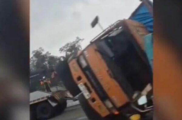 “Truk tersebut, diduga tidak kuat menanjak. Lalu, bergerak mundur ke arah kanan, menabrak pembatas jalan, dan langsung menghantam Toyota Altis yang sedang melaju di lajur tiga,” ujar Awang.