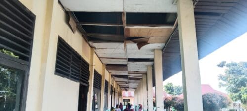“Memprihatinkan” kondisi bangunan UPT SDN 013 Pangkalan Baru terlihat, atap seng sudah keropos dan ada yang sudah bertambal, serta Plafon triplek sudah jebol jebol dan ada juga yang sudah berjatuhan.