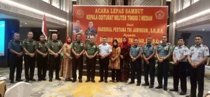 RADARINDO.co.id – Belawan : Letkol Laut (PM) Daniel Dwi Handoyo SH, hadiri acara lepas sambut Kepala Oditurat Militer Tinggi I Medan (KA OTMILTI I) Medan. Dari Marsekal Pertama (TNI AU) Jamingun SH, MH kepada Brigadir Jendral (TNI AD) Azhar SH, M.Kn