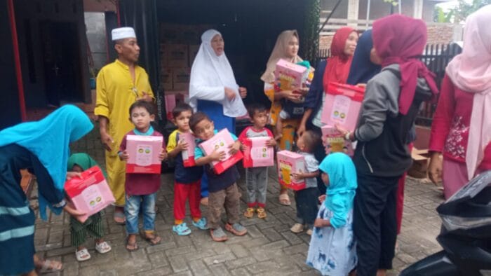 Ratusan kotak roti balita yang merupakan bantuan dari Kemensos itu disalurkan langsung oleh Ketua LSM Kemilau Cahaya Bangsa Indonesia (KCBI) Sumut, Ismail didampingi Sekretaris Juwita, SH serta Juli Iskandar, ST.