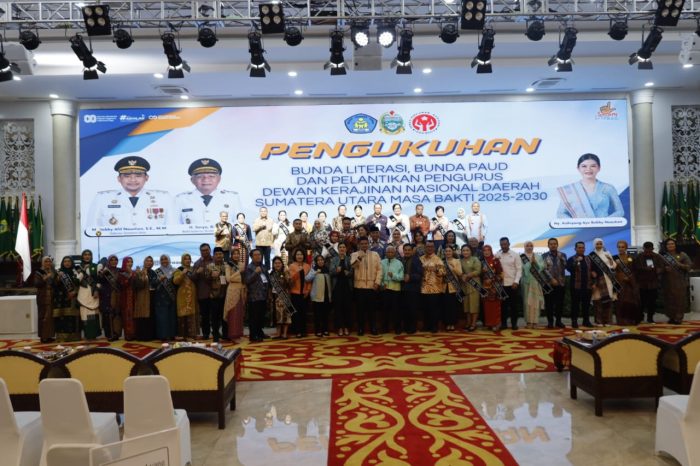 Pengukuhan dilakukan oleh Ketua Bunda PAUD, Bunda Literasi sekaligus Ketua Dekranasda Provinsi Sumatera Utara, Ny Kahiyang Ayu Dewi Bobby Nasution.