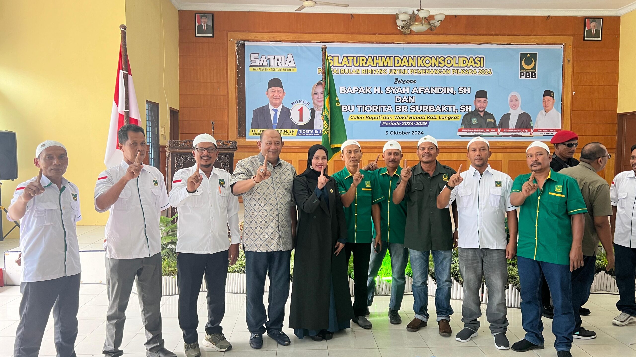 RADARINDO.co.id – Langkat : Partai Bulan Bintang (PBB) Kabupaten Langkat menggelar deklarasi dukungan kepada pasangan Calon Bupati-Wakil Bupati Langkat nomor urut 1, Syah Afandin-Tiorita Br Surbakti (SATRIA) di Gedung PKK Stabat, Kabupaten Langkat, Sabtu (05/10/2024).