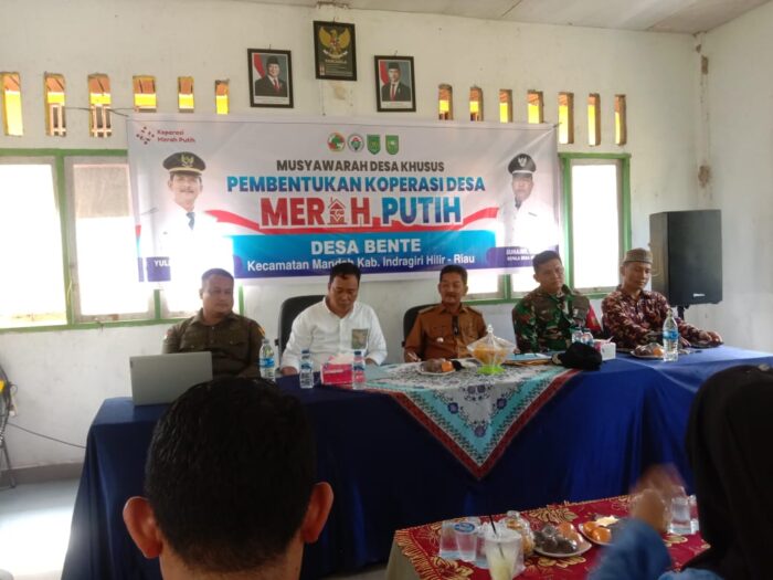 RADARINDO.co.id – Inhil : Pemerintah Desa (Pemdes) Bente, Kecamatan Mandah, Kabupaten Indragiri Hilir (Inhil), Riau, menggelar Musyawarah Desa Khusus pembentukan Koperasi Desa (Kopdes) Merah Putih, Senin (19/5/2025).