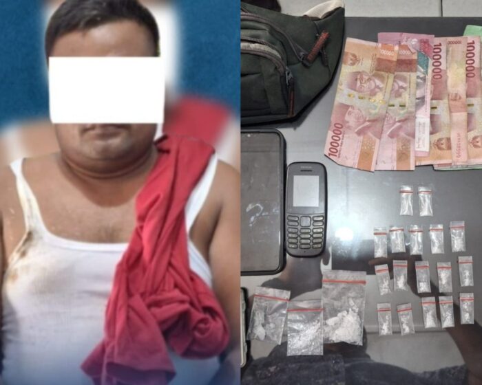 Yakni berupa 1 klip plastik besar, 2 klip sedang, 17 klip kecil diduga berisi sabu, 2 timbangan elektrik, 3 unit handphone, 1 alat hisap sabu (bong), uang tunai Rp700.000, serta 1 tas sandang warna hijau.