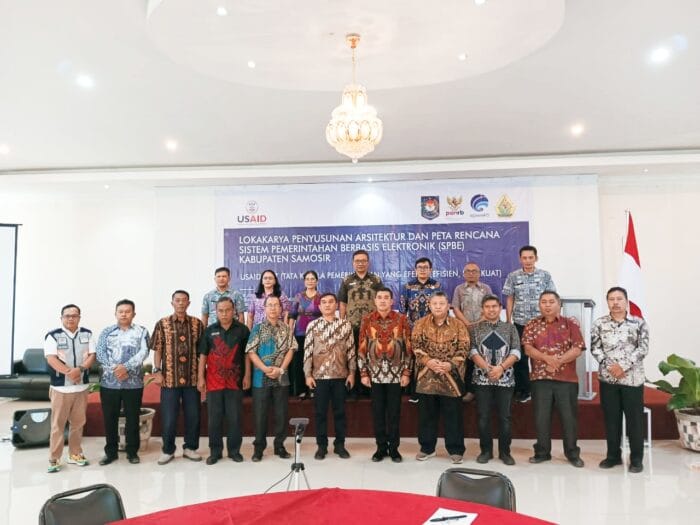 RADARINDO.co.id – Samosir : Pemkab Samosir melalui Dinas Komunikasi dan Informatika bekerjasama dengan USAID ERAT menggelar lokakarya penyusunan arsitektur dan peta rencana Sistem Pemerintahan Berbasis Elektronik (SPBE) yang dibuka secara resmi oleh Pj Sekda Samosir, Naslindo Sirait di Hotel JTS, Kamis (08/6/2023).