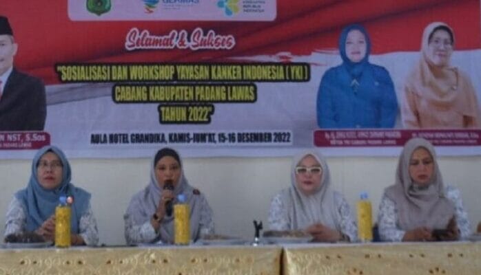 RADARINDO.co.id – Palas : Plt Ketua TP PKK Kabupaten Padang Lawas (Palas), Hj Emma Nurul AZP, meghadiri sekaligus membuka kegiatan sosialisasi dan workshop Yayasan Kanker Indonesia (YKI) Cabang Palas di Aula Hotel Grandika Sibuhuan, Jum’at (16/12/2022).