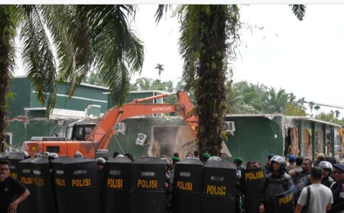 RADARINDO.co.id – Sumut : Tim gabungan dari Kepolisian Daerah Sumatera Utara (Polda Sumut), Kodam I Bukit Barisan dan Satpol PP Pemprov Sumut, mengeksekusi gedung Tempat Hiburan Malam (THM) Marcopolo di Jalan Sei Petani, Kecamatan Kutalimbaru, Kabupaten Deli Serdang, Kamis (14/8/2025).