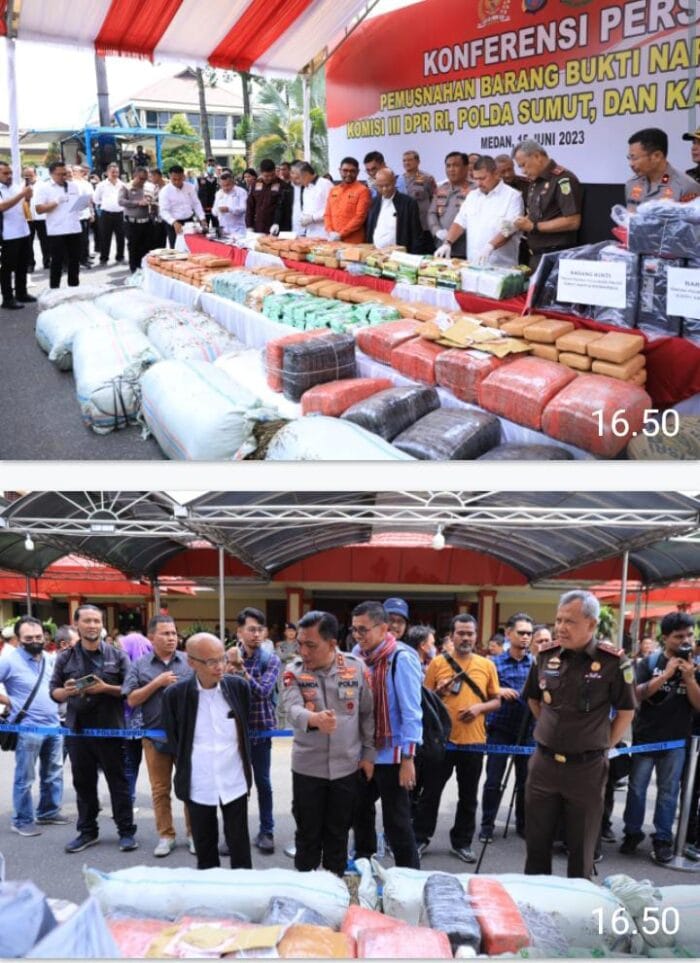 Selanjutnya, barang bukti narkoba hasil tangkapan tersebut dimusnahkan Polda Sumut bersama Komisi III DPR RI dengan menggunakan mesin incenarator, Kamis (15/6/2023).