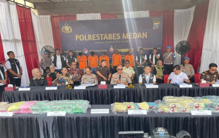 “Yang kita musnahkan adalah hasil dari 2 penindakan, yang pertama pada Senin (21/7/2025) dengan berat 1 Kg dan yang kedua di hari yang sama disita sabu seberat 19 kg dan 58.750 butir pil ekstasi,” kata Kapolrestabes Medan, Kombes Pol. Dr. Gidion Arif Setyawan dalam rilisnya.