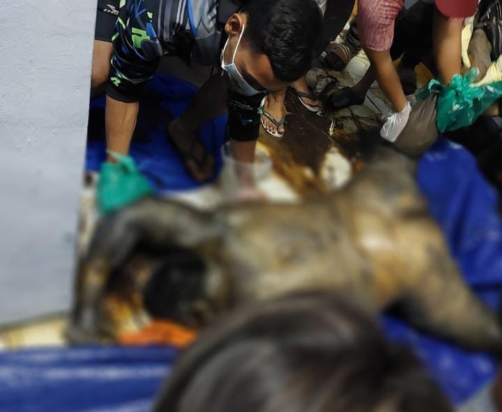 Setelah di TKP ternyata pintu rumah dan jendela rumah korban dalam keadaan terkunci, kemudian jendela kamar di tarik untuk melihat situasi didalam rumah dan terlihat 1 orang laki laki dewasa (korban) telah meninggal dunia dengan posisi telungkup dengan tidak menggunakan pakaian sementara kondisi tubuh mulai membusuk serta mengeluarkan cairan dengan bau yg menyengat, selanjutnya personil mendobrak pintu depan dan masuk ke rumah.