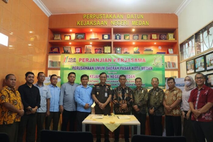 RADARINDO.co.id – Medan : PUD Pasar Medan dengan Kejaksaan Negeri (Kejari) Medan menandatangani perjanjian kerjasama (PKS) tentang penanganan/penyelesaian kasus hukum perdata dan tata usaha negara, Kamis (09/3/2023).