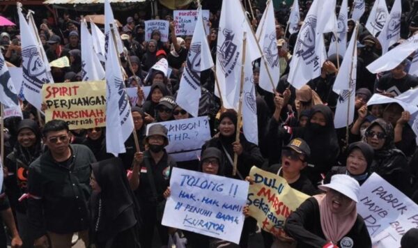 Menurut massa, hingga kini kurator belum membayarkan hak-hak mereka. Padahal, sebelumnya dijanjikan akan cair dalam waktu tiga bulan setelah pemutusan hubungan kerja (PHK).