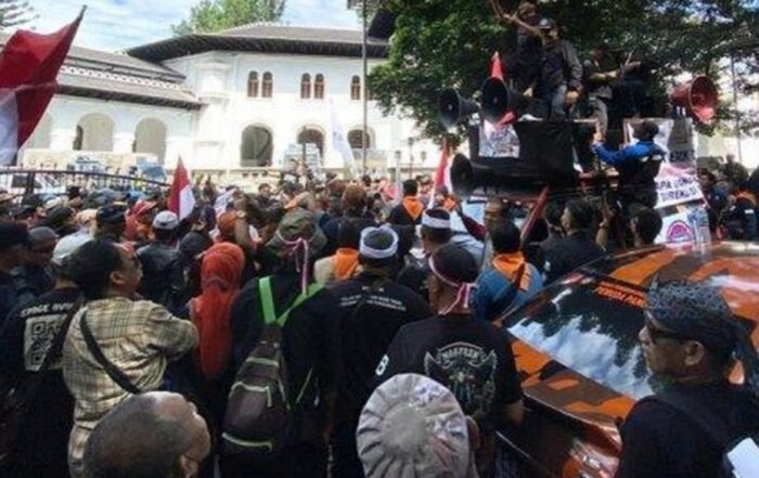 RADARINDO.co.id – Bandung : Ribuan karyawan dan pensiunan PT Pos Indonesia menggelar aksi demo didepan kantor pusat PT Pos Indonesia Jalan Cilaki, Kelurahan Citarum, Kecamatan Bandung Wetan, Kota Bandung, Selasa (20/5/2025).