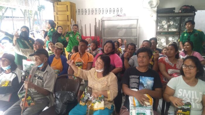 Sembako yang dibagikan untuk 300 umat kristiani kurang mampu tersebut berupa beras, ,air mineral, gula, dan sirup.