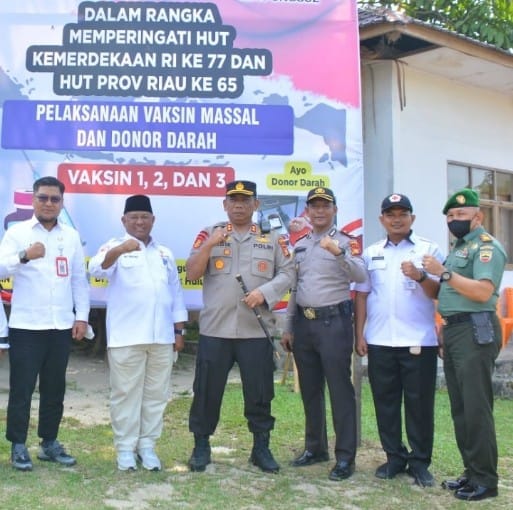 “Untuk menjaga Harkamtibmas Kabupaten Kampar dengan adanya giat Vaksinasi ini dan sekaligus bersempena HUT RI Ke-77 dan HUT Provinsi Riau Ke-65 kami selaku Kapolres Kampar mengucapkan terima kasih kepada seluruh Warga yang telah menyempatkan diri untuk melakukan Vaksinasi. Dengan Vaksinasi ini tentunya kita menjadi sehat dan Herd Immunity pada tubuh kita,” ucap Kapolres.