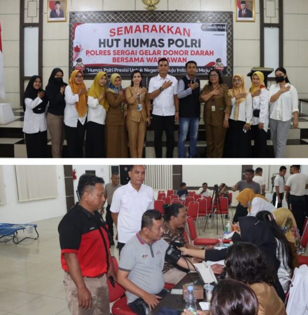 RADARINDO.co.id – Sergai : Dalam rangka menyemarakkan HUT ke-72 Humas Polri, Polres Sergai menggelar kegiatan donor darah bersama sejumlah wartawan di Mapolres, Selasa (24/10/2023).