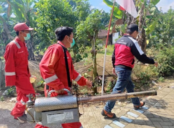 Pemerintahan Desa Sidomulyo, Kecamatan Semboro beserta Tim Palang Merah Indonesia (PMI) Kabupaten Jember melakukan pengasapan atau penyemprotan dirumah warga dan sekitar selokan.