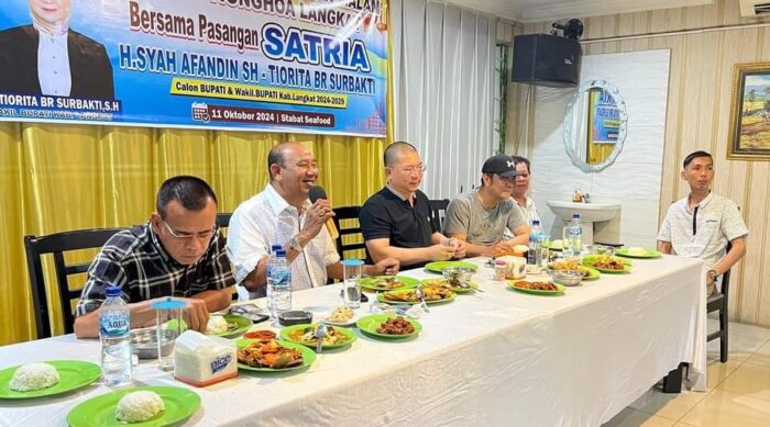 RADARINDO.co.id – Langkat : Pasangan Calon Bupati Langkat nomor urut 01, H Syah Afandin SH-Tiorita Surbakti (SATRIA) menggelar temu ramah dengan masyarakat etnis Tionghoa di Stabat Seafood, Jum’at (11/10/2024) malam.