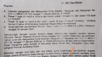RADARINDO.co.id – Medan : Penyidik Polres Langkat belum menetapkan tersangka terkait pengaduan masyarakat (Dumas) oleh…
