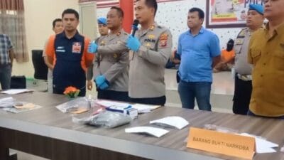 RADARINDO.co.id – Belawan : Kapolres Pelabuhan Belawan AKBP Josua Tampubolon SH, MH, gelar konferensi pers…