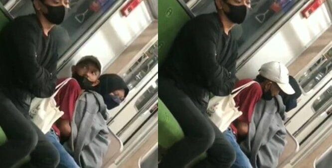 Meski posisinya seperti mengantuk, namun pemuda di sebelah mereka tampaknya tidak tertidur. Matanya tampak tak terpejam dan melihat ke arah depan bak sedang menyaksikan aksi muda-mudi di sebelahnya dari pantulan kaca. (KRO/RD/TRB)