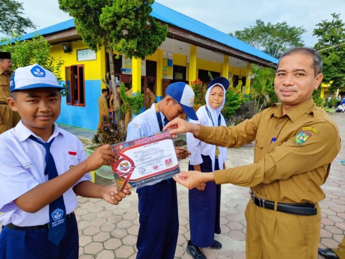 Usai melaksanakan Apel Pagi Kepala UPT SMPN 1 Siak Hulu, Jasir M.Pd secara simbolis menyerahkan Piagam dan Mendali kepada 5 orang siswa siswinya.