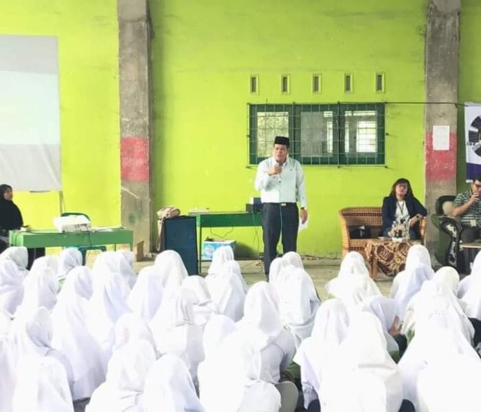 Dihadapan 500 orang santri dan dewan guru M.Doly Wijaya Kabag perekonomian Setdakab Labuhanbatu Selatan hadir sebagai tim pemateri bersama kepala BRI unit Langga payung.