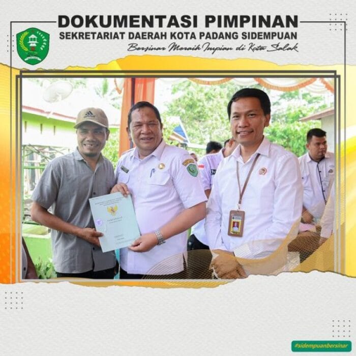 RADARINDO.co.id – Psp : Walikota Padang Sidimpuan, Irsan Efendi Nasution SH MM, menghadiri penyerahan sertifikat Pendaftaran Tanah Sistematis Lengkap (PTSL) yang dilakukan secara simbolis oleh BPN di pelataran parkir Masjid Shirothol Mustaqim Kelurahan Batunadua Jae Kecamatan Padang Sidimpuan Batunadua, Kota Padang Sidimpuan, baru-baru ini.